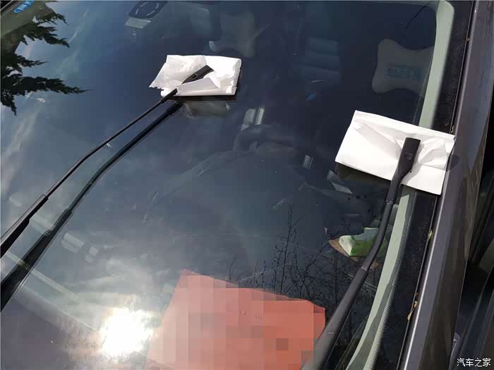 这个地方要注意,取下雨刷后,要把支架放下来,避免支架意外放下,把前档打碎,可以用毛巾,我是用的纸巾,这一步一定不要忘了。