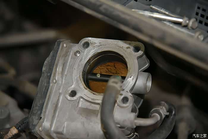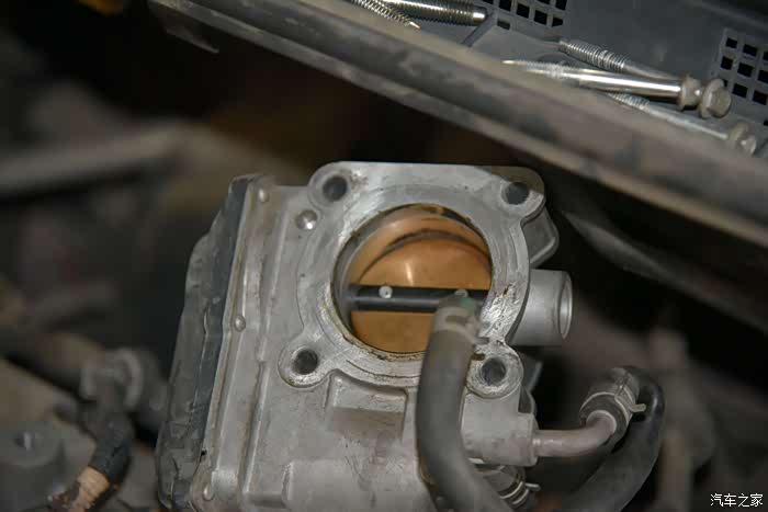 言归正传节气门,拆开骐达节气门后是这个样子,里面是有积碳的