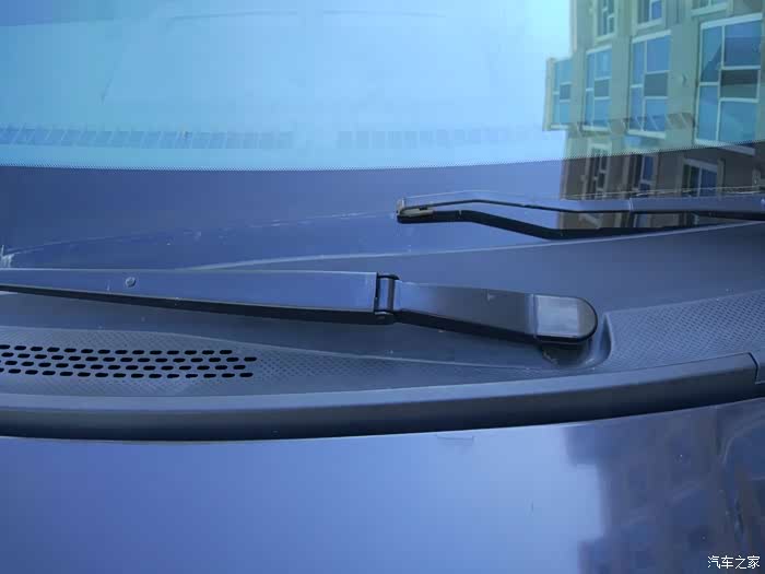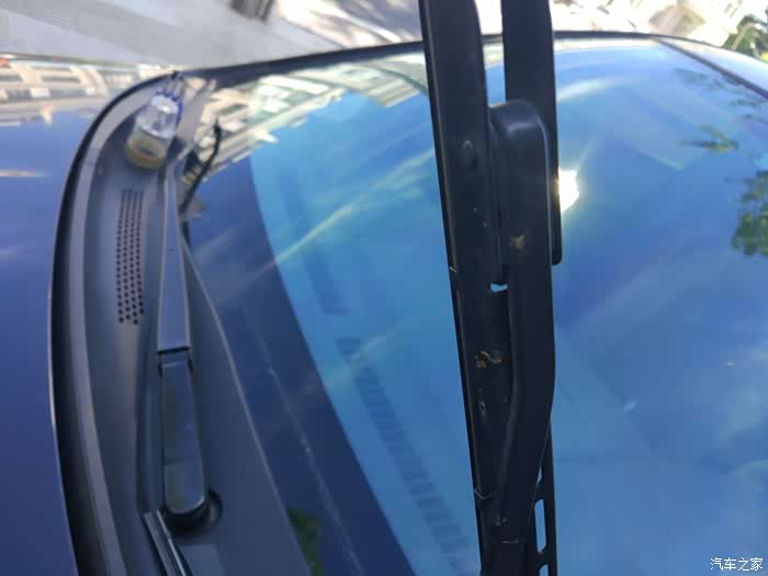 在这个位置上面是一个卡扣,先按住内侧的卡子,拿住雨刮向上用力,即可摘下。