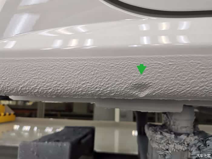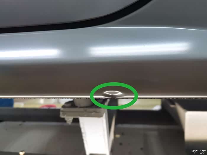 首先我们要找支撑车体的支撑点。这里告诉大家一个小技巧,大众集团旗下的所有车型,门槛两侧都有一个小的标记,类似于三角符号,总共有4个分布在门槛的前后两侧,大家可以去找一下。