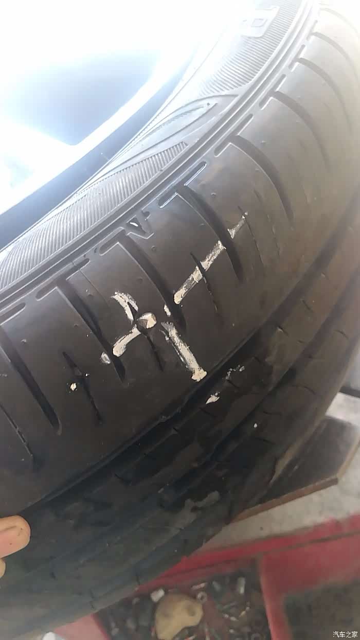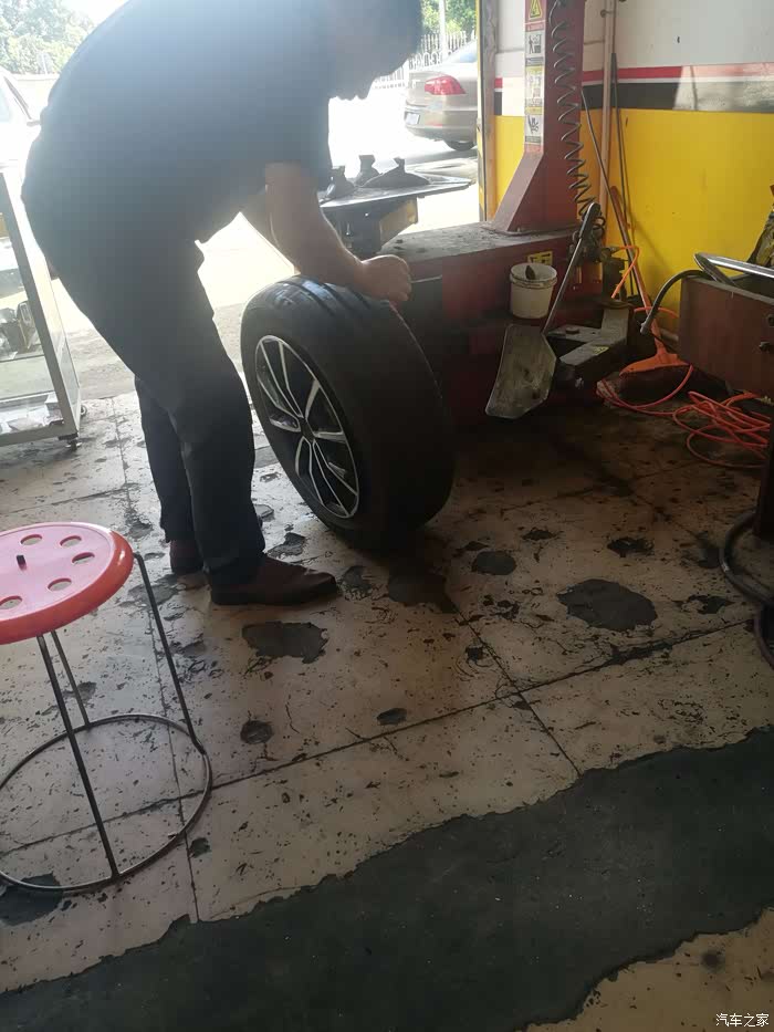 找到真凶了,换好备胎就开到修理店,准备补胎。