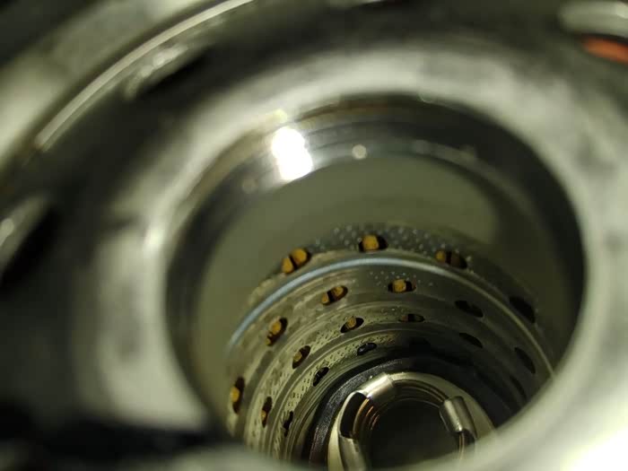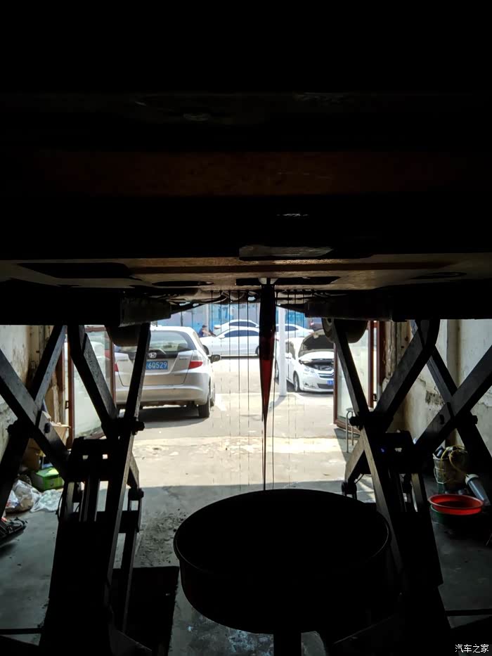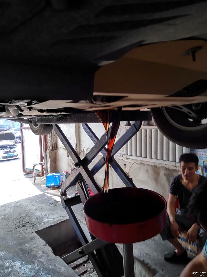 开始放油了,旧机油颜色其实不深,还很清亮的。但时间里程也差不多了,该换还是得换的。