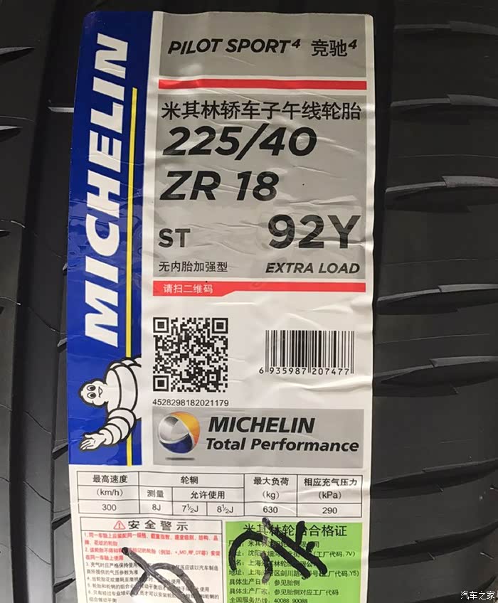 92表示的是载重指数……630kg;Y表示最高速度不得超过300KM/H,可以满足大部分大马力车了。