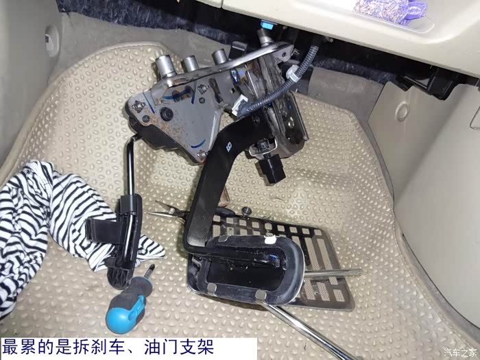 就是拆这个电阻得先拆除刹车油门支架,这个比较有难度,空间太小了,所以操作比较累
