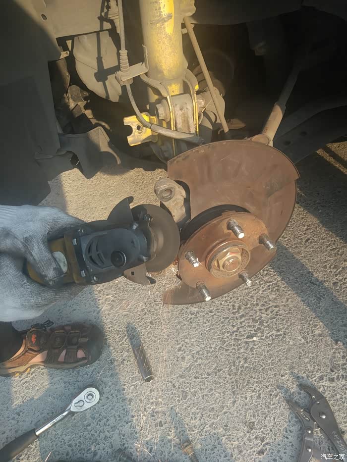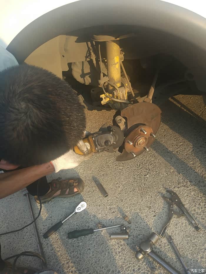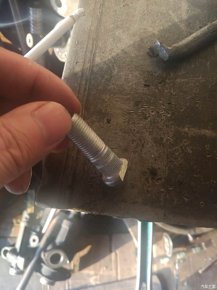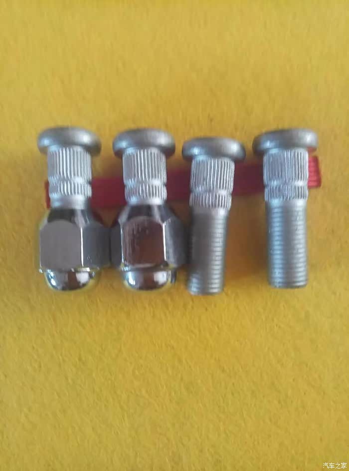 由于是9.30日晚7点多开始装卸轮毂,一颗螺杆断裂(断的都是幸运)一颗撸了连在一起转了,(大麻烦)打折了3个转头,连夜找五金店购买,还好有熟悉的老板给开门拿货,打了2个多小时,最后才搞定,终于把轮毂拿下来了,由于改装的轮毂螺帽打坏了,只好换上原车轮毂轮胎!五个螺杆断了2个,这车也不敢开吧!