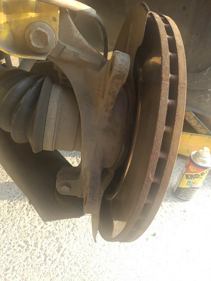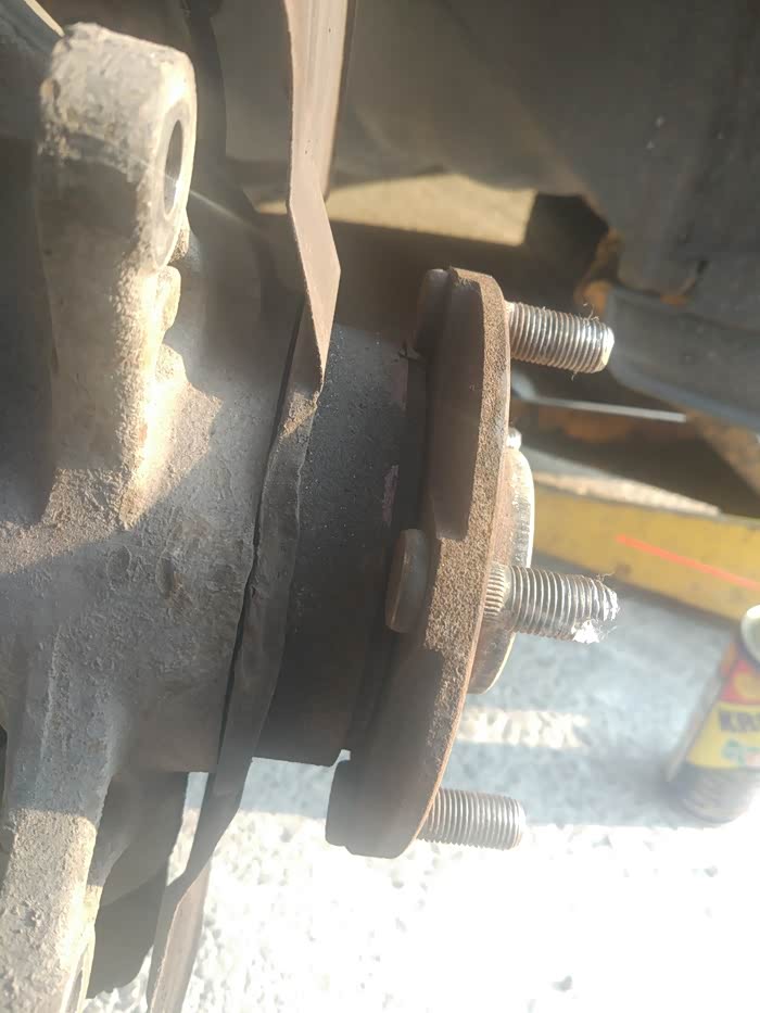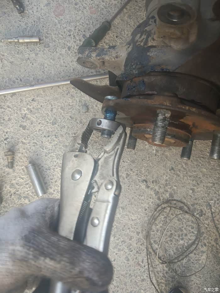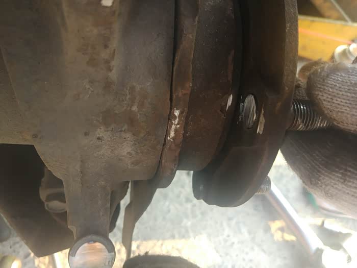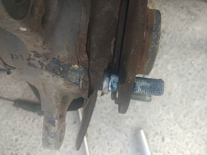 取下刹车盘,看到的就是那颗被打的稀烂的螺杆,费了3个转头,