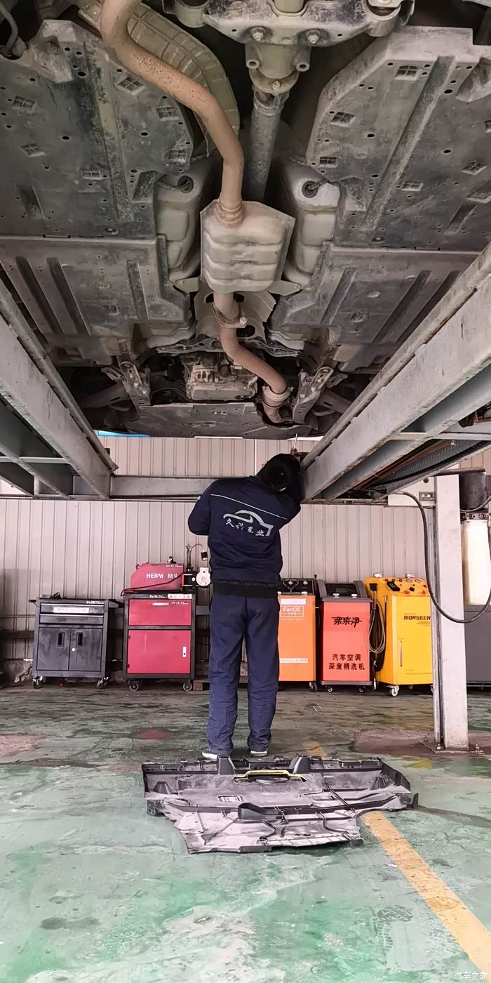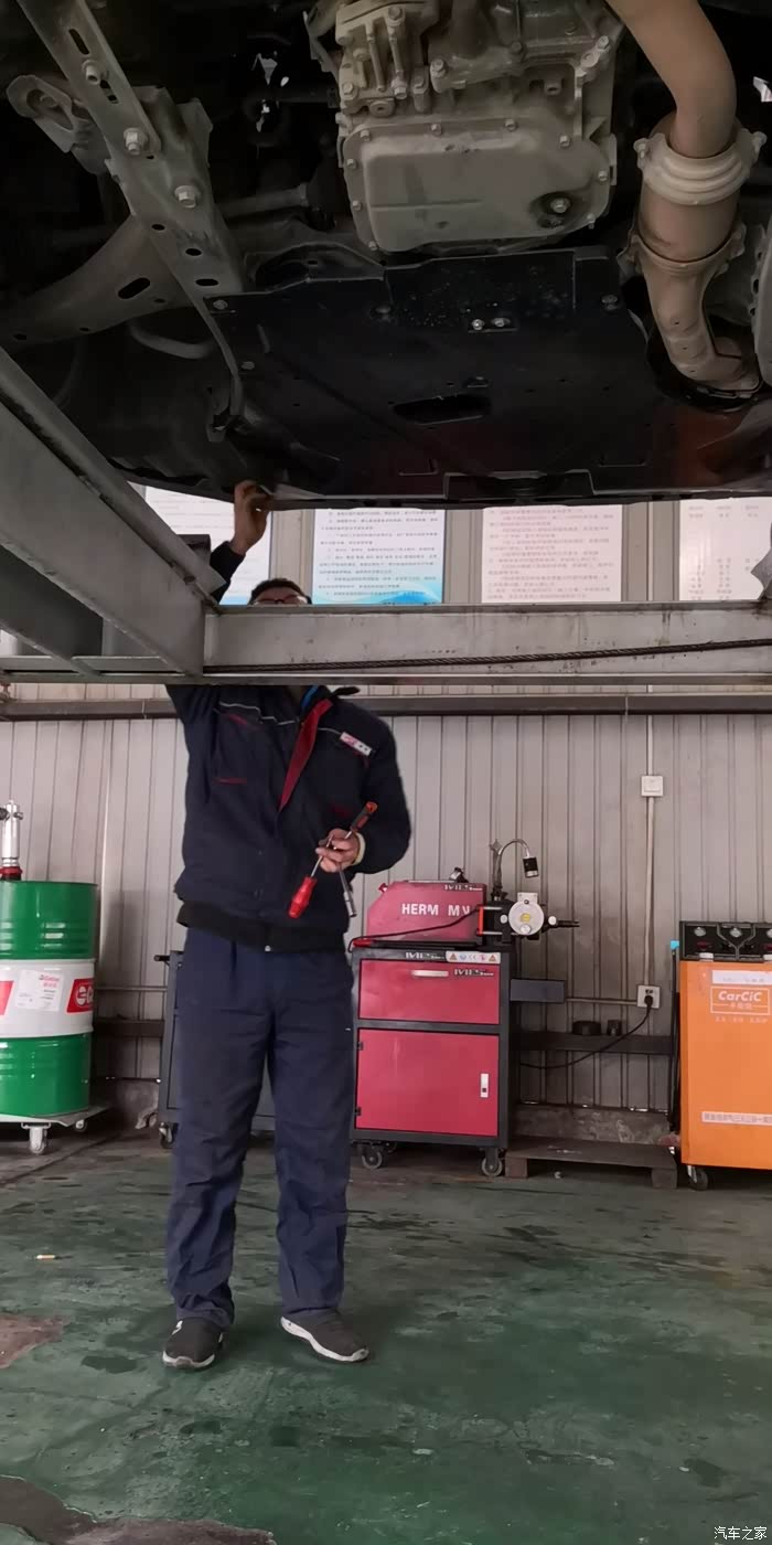 其实,更换发动机护板,不是什么难事,但没有升降机或者地沟,钻在车下更换还是很费力的,既然车友有修车店,为何不用呢?