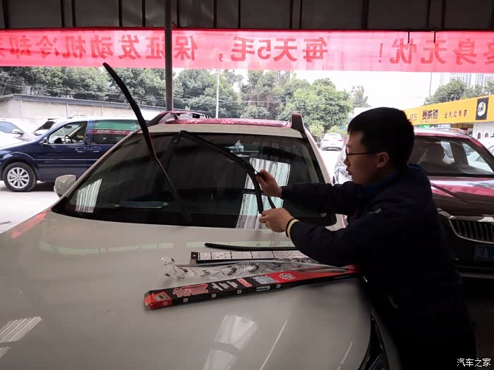 安装完毕,开动雨刮器,干刮十分钟,给玻璃上镀一层憎水膜。