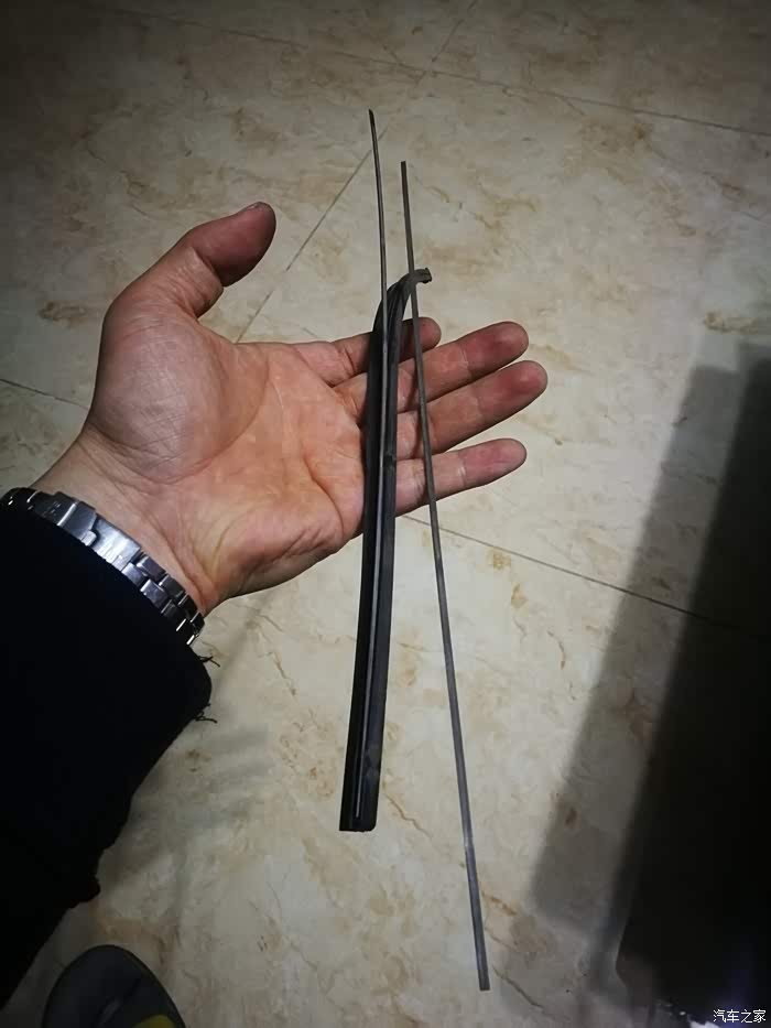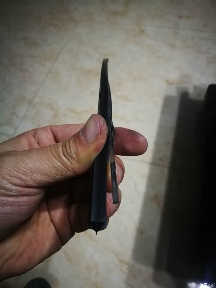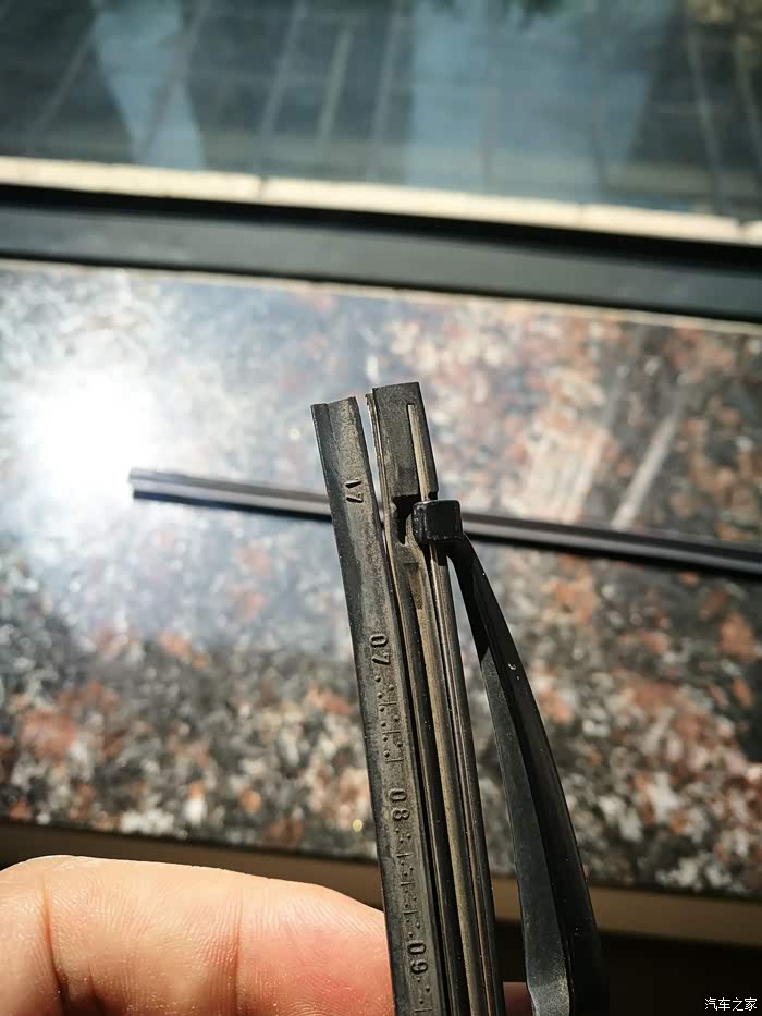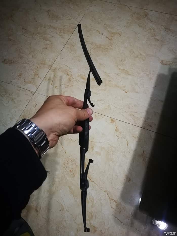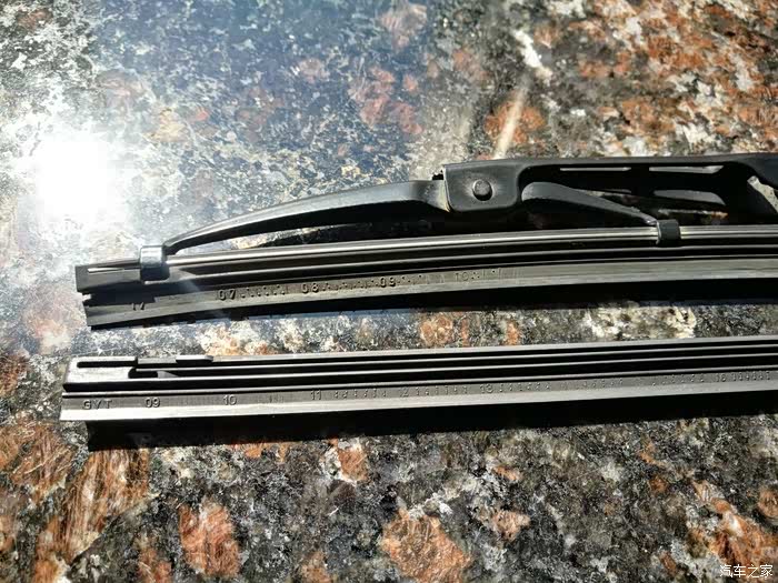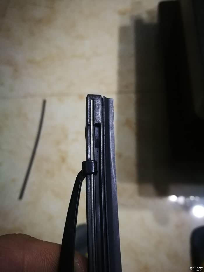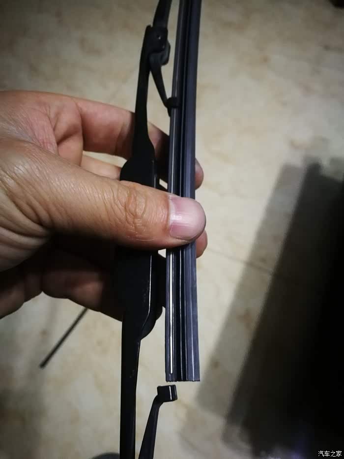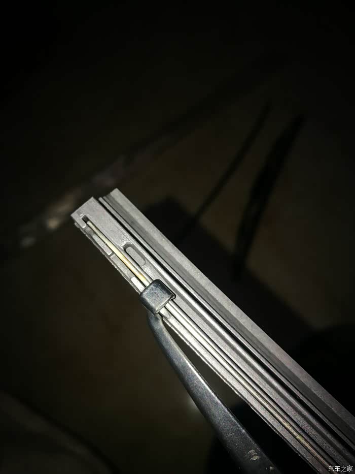 下面是拆雨刮,拉起来可以看到卡扣那有个小丁丁,压下去超右边一推就滑动出来了