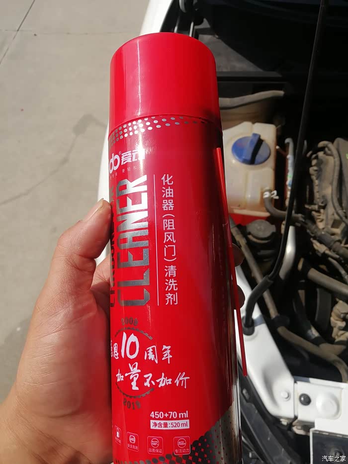 朋友送的化油器清洗剂,凑合用吧。(听说用化油器清洗剂不好,应该用节气门清洗剂)