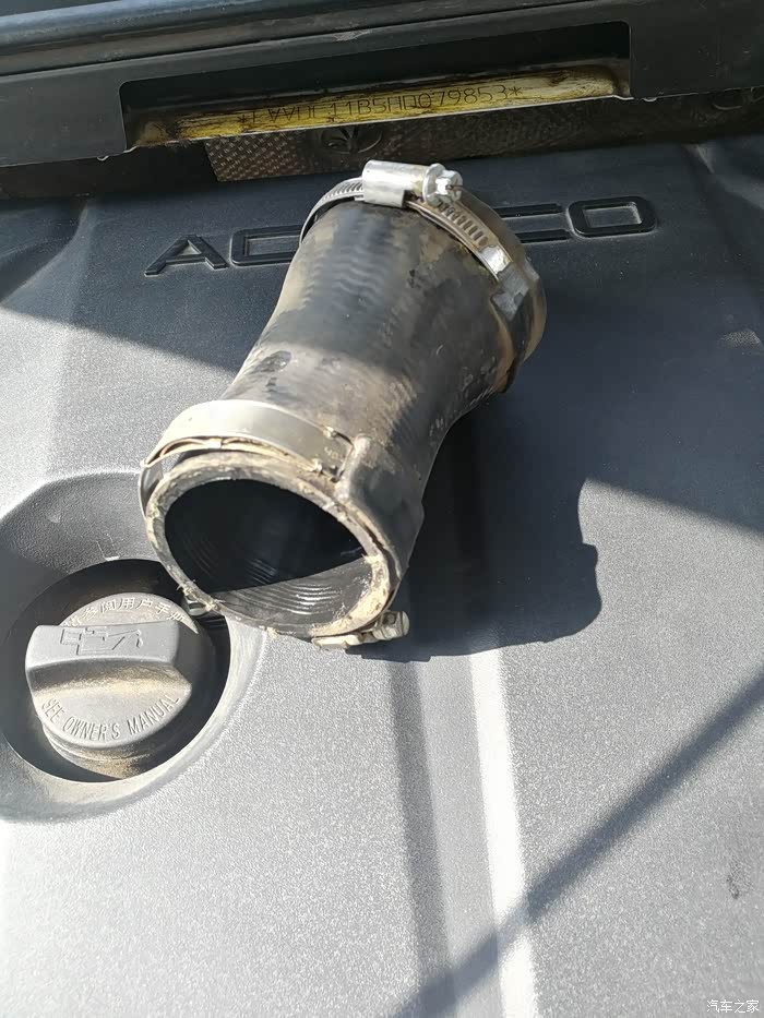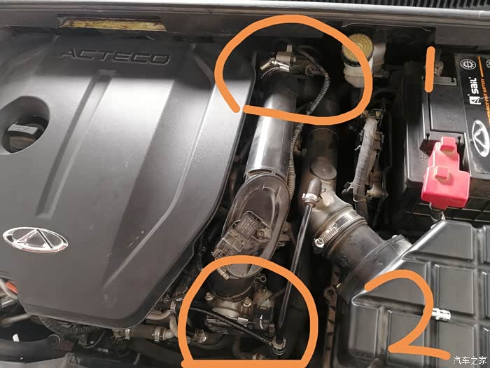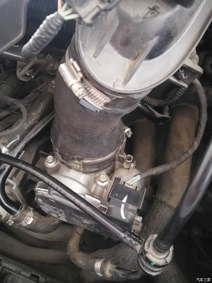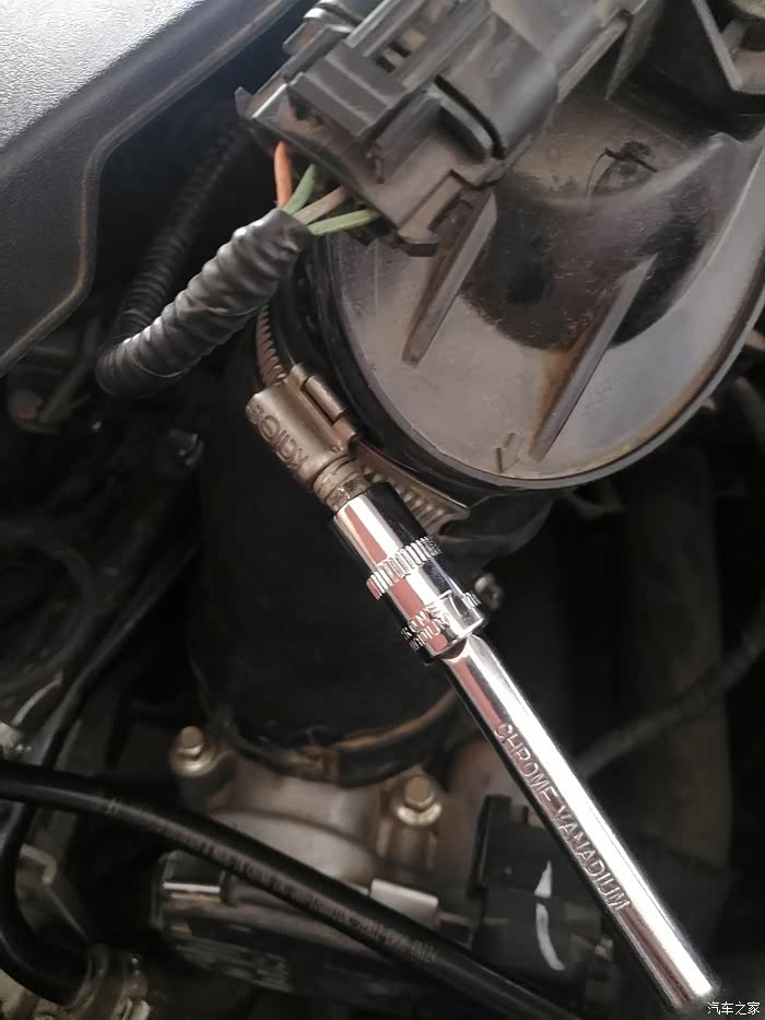 看到连接节气门的进气管有两个卡子。