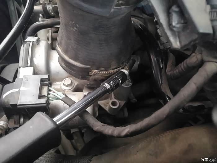 节气门就在进气管的下边,然后有4个螺丝。全部松开。型号M8套管。