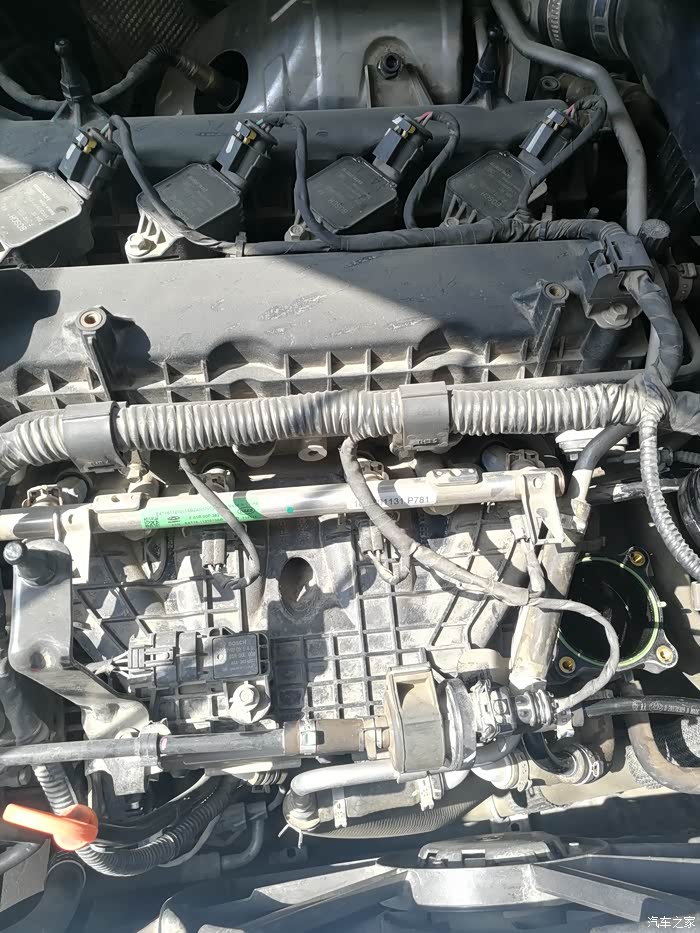 拿掉发动机盖板,看到三年的发动机依然很干爽,无渗油的迹象。