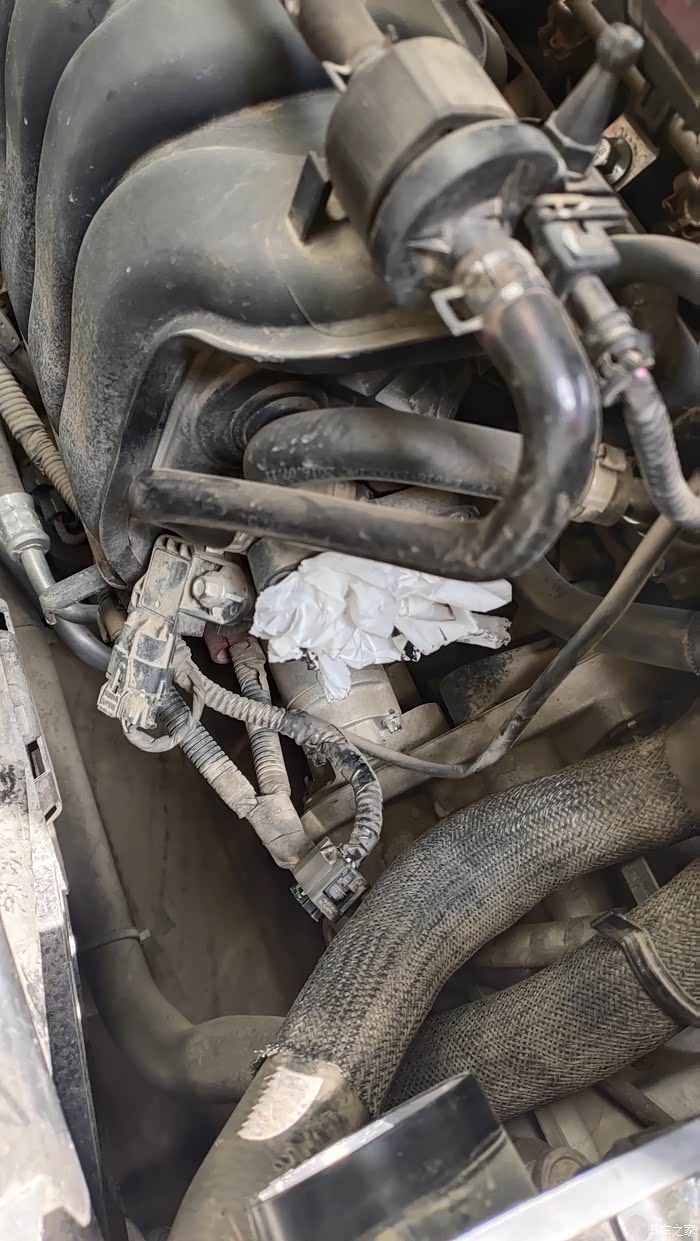 这个地方。用纸擦了一下,也挺脏的,但这个地方不敢洗,怕引起啥不良的后果,毕竟咱也不是专业的。我清洗节气门的时候。用卫生纸把着这个口堵住了防止有别的杂物,或者灰尘进去。