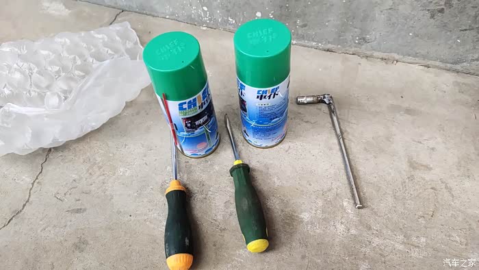工具准备单位,一把平口起子一把十子起子还有我自己加工的L型套筒。
