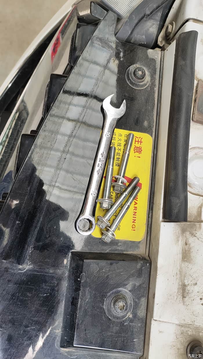 检查一下,连接部位有没有牢固?然后把电池正极用十个开口扳手把小螺丝柠紧搞定。