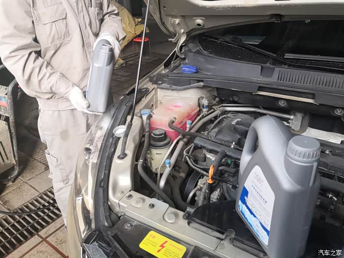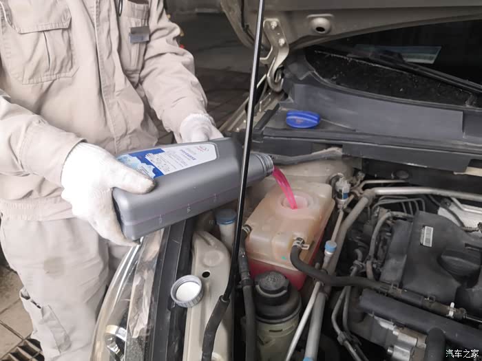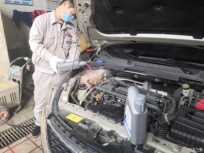 这不今天就来给小五换换防冻液,也经历了4个冬天。正好赶上盈丰的防冻液打折,原来50多,现在40多,也挺合适,加上工时费也就200块钱左右。毕竟小五跑了三年多了,200块钱让小五修整一下,也值了。一大早趁着人少来到4s,因为人少,师傅领了辆,直接就把进气管拆掉,卸掉防冻液的螺帽,大约10分钟左右防冻液就放得差不多了,然后是不是又到车上点火,踩踩油门,让发动机里边的防冻液也都给释放出来。接着按照逆顺序装上发动机防冻液帽,安上进气管道,然后开始加入2壶4升防冻液。之后让小五怠速运转着,并给我说,啥时候冷风扇启动了就可以了。