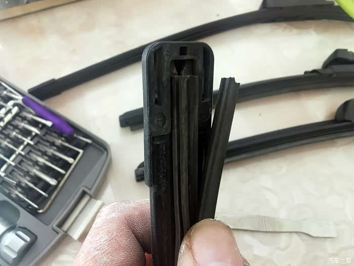 在家里找到一个雨刮器,但是型号和艾瑞泽的不符合,没关系,拆下来胶条换上去依然能用就OK。