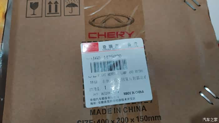 上面还有奇瑞的标,和原厂件差不多,不确定是不是原厂件