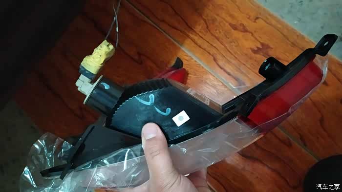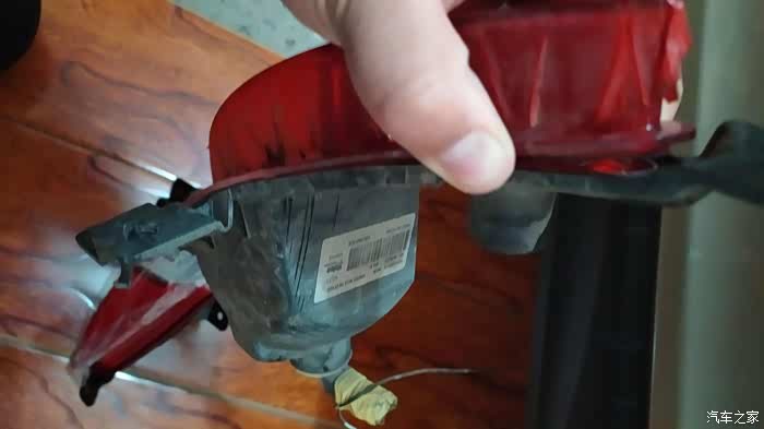 拆下来的雾灯,原厂的透明灯罩,我贴的红膜