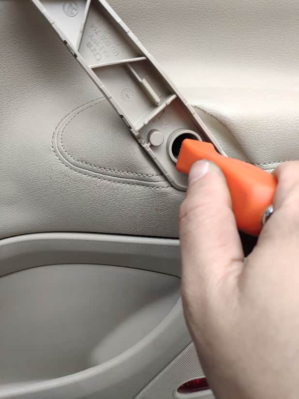 拆开內把手的盖子,底下有个洞的,用螺丝刀顶开可以了。