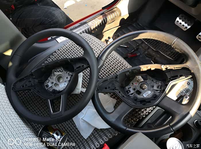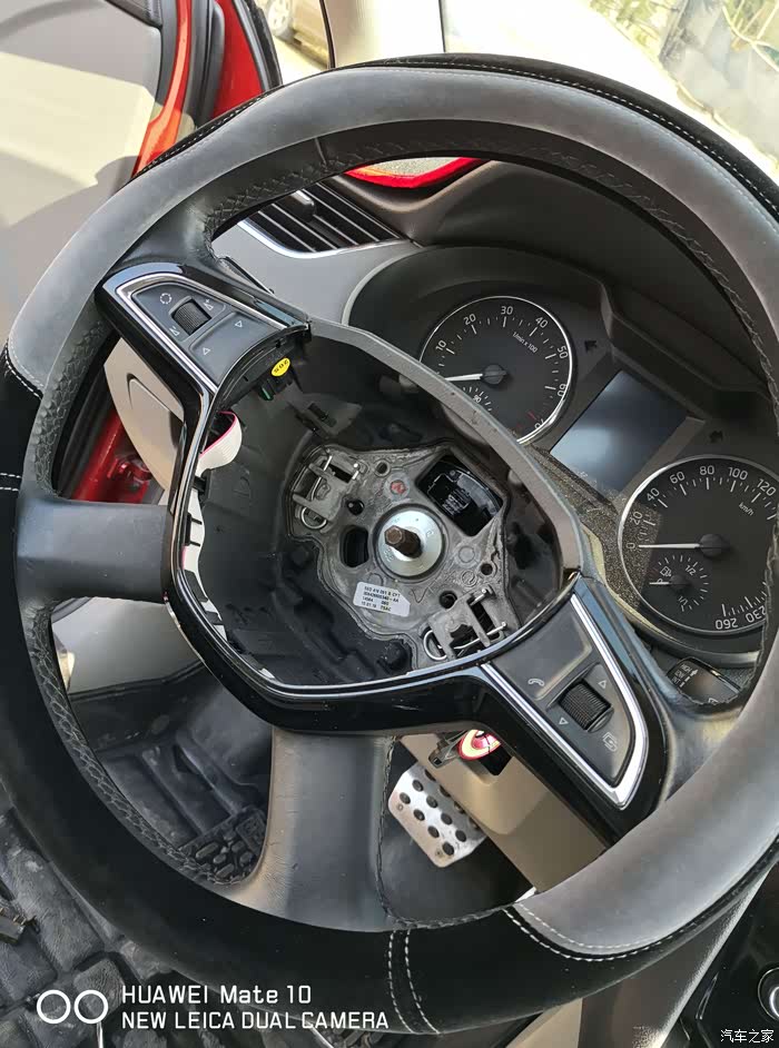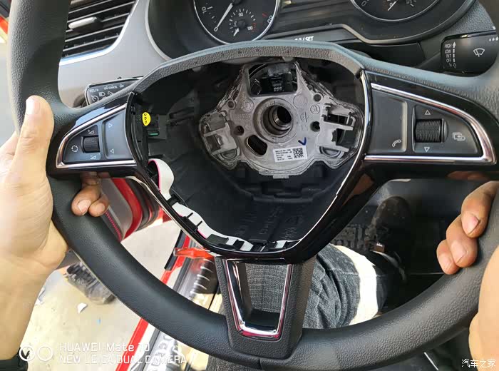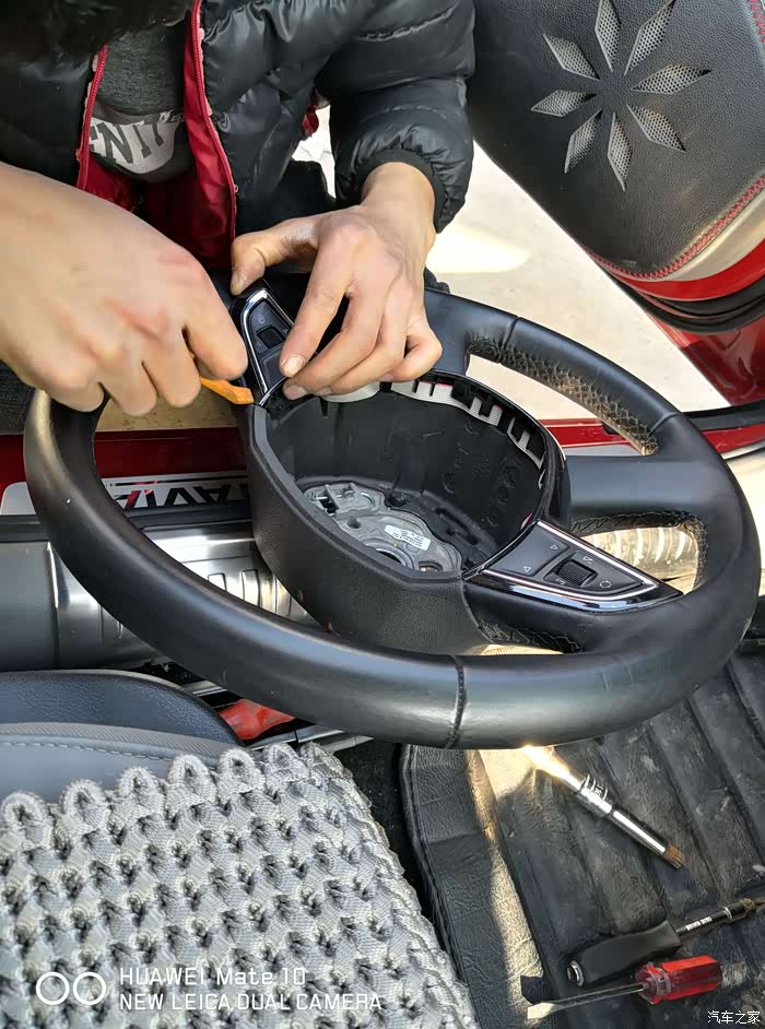 很多车友反倒喜欢四辐,看各人品味。更换作业过程还是比较考验动手能力的!今日三辐方向盘终于到手,猴急得实在忍不住了!路边五金店借了个M12螺丝刀和一字起子就开干!费尽周折、一个小时终于折腾完毕。