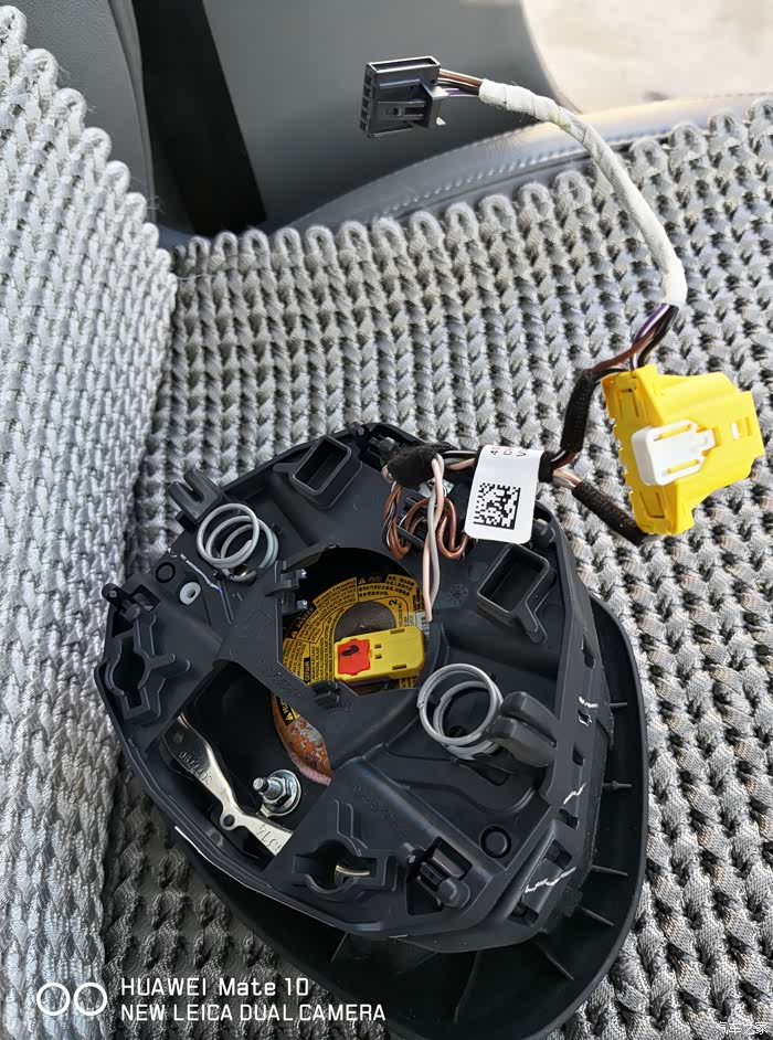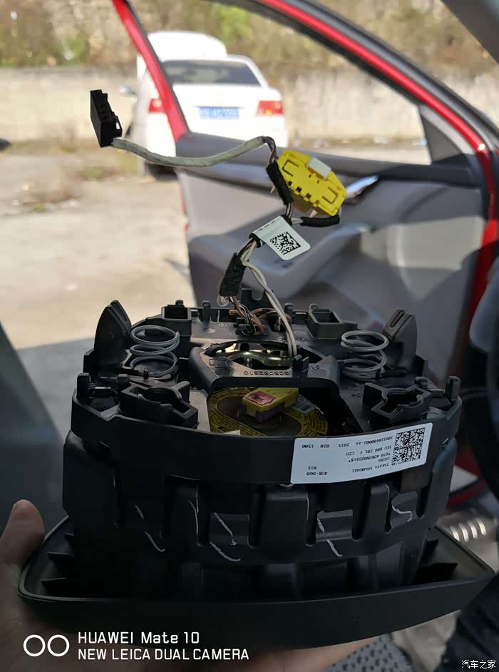 接着,多功能按键和喇叭线束总成卡子抠下来,气囊和喇叭就顺利拿出来了!