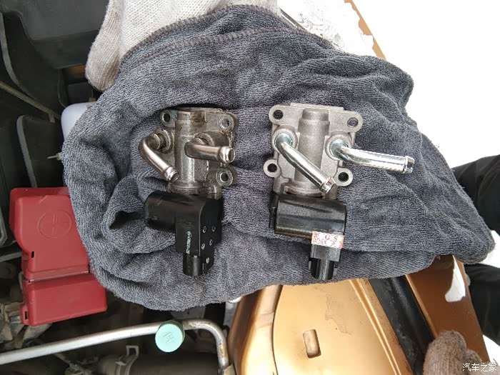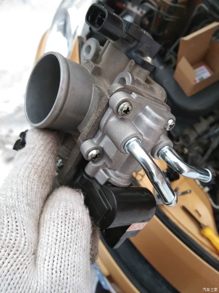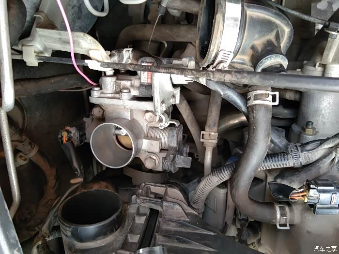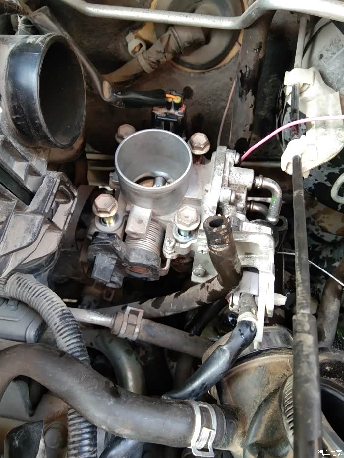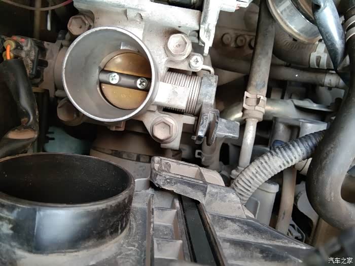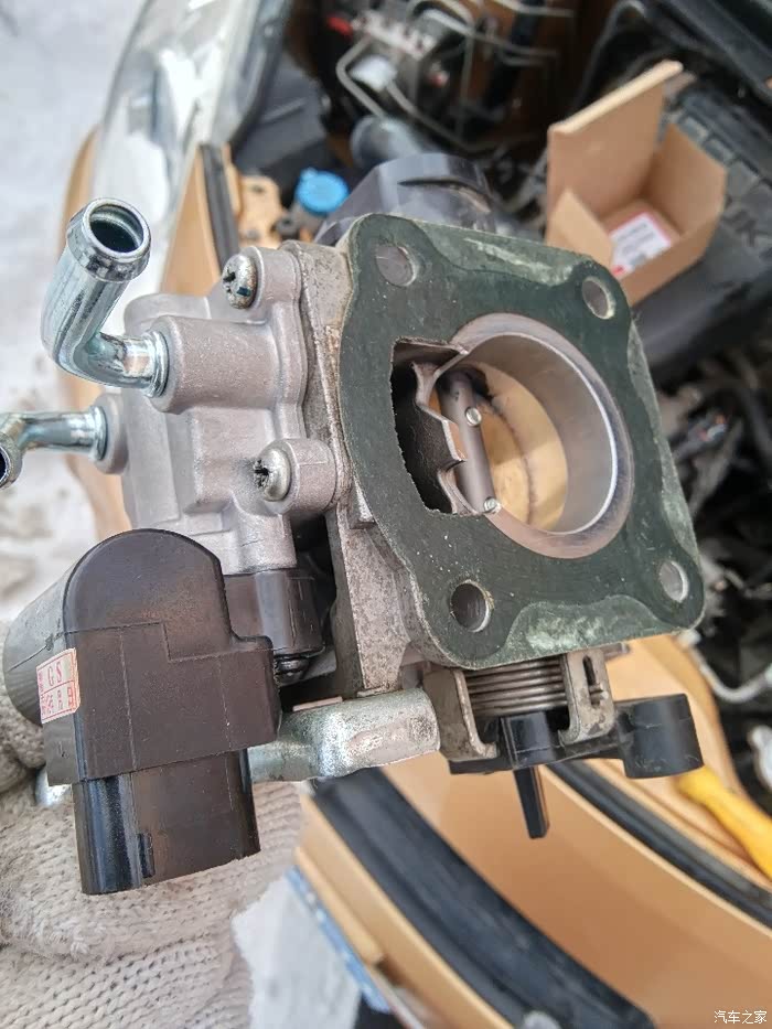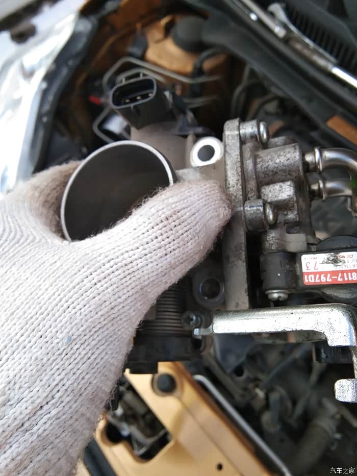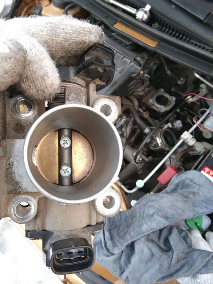 节气门里面的积碳和油泥,化清剂还没到货就用抹布擦了擦。跑两年再清洗吧。