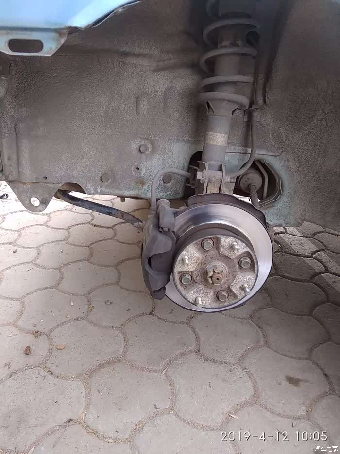 轮子碍事,也卸了。发现刹车盘该换了,准备下次保养的时候都换掉。