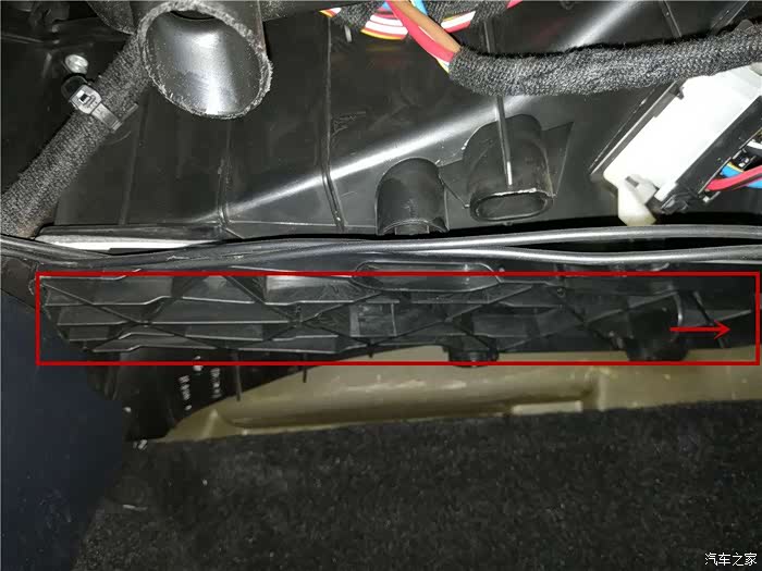 滤芯在副驾驶室的脚步位置,地方比较狭窄,所以,先把座椅向后推到头,尽量留出空间