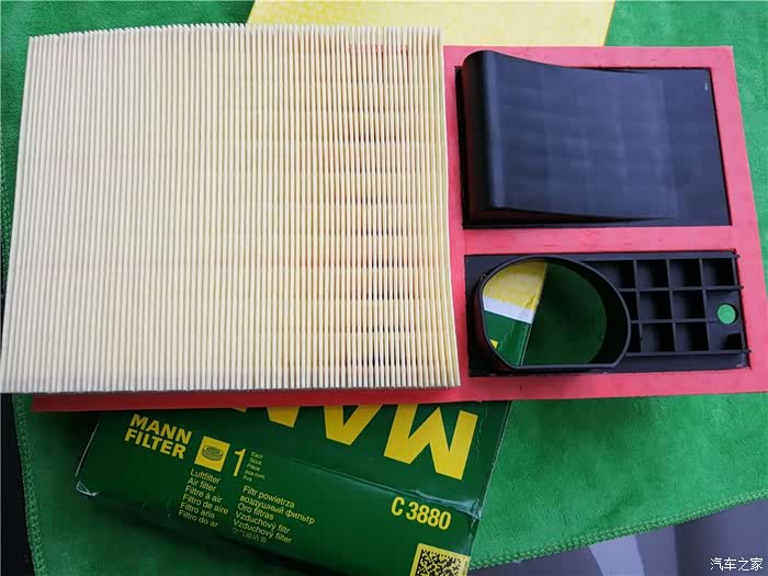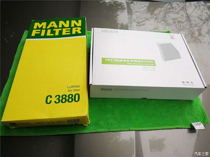 把准备好的材料拿出来,一个是空气滤芯,一个是空调滤芯。