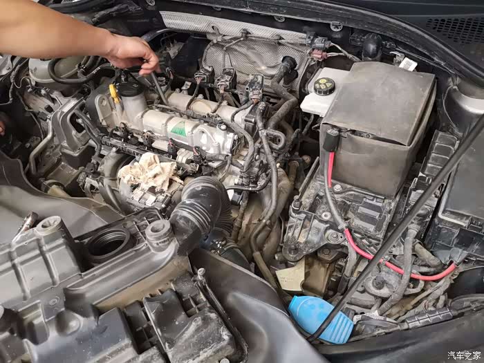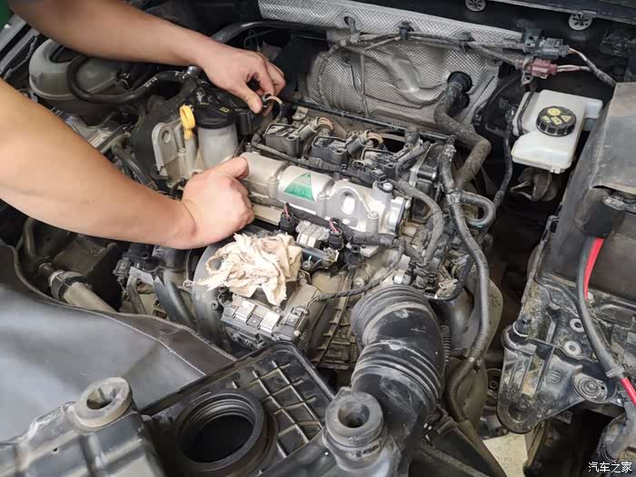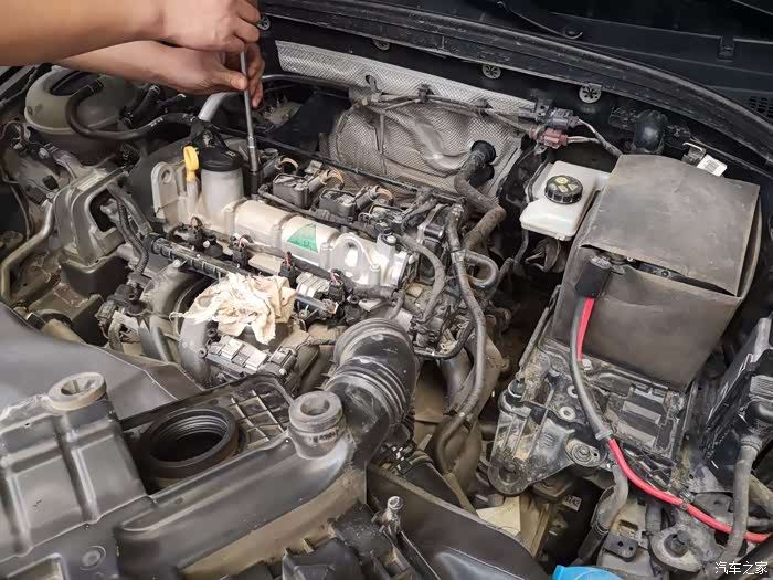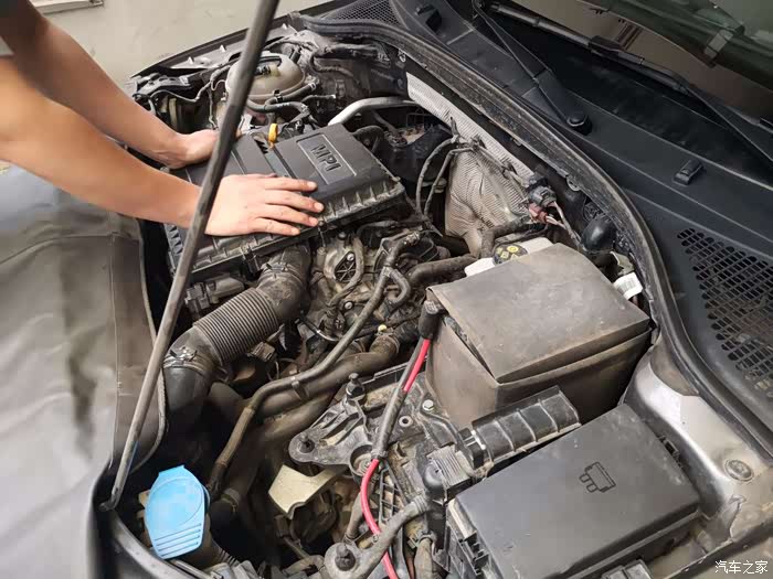 需要拆掉上面的空滤盒,看着技师拆的很简单。