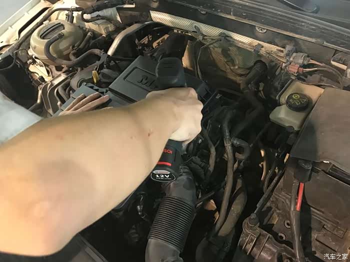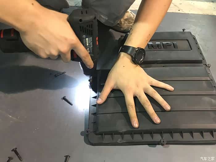 开始拆卸进气盖,需要把螺丝全部卸下来!
