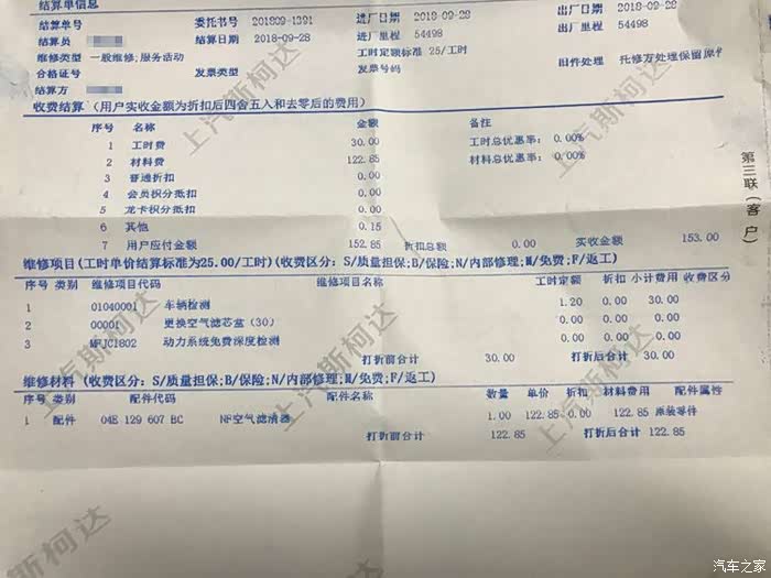 上个月维修后的进气盖,伤痕累累,有点不放心。本来想着国庆假期,去店里更换,可4S提前电话过来货已经到,咨询是否有时间,想着既然货到了,就国庆前更换。话就不多说了,开始更换进气盖!