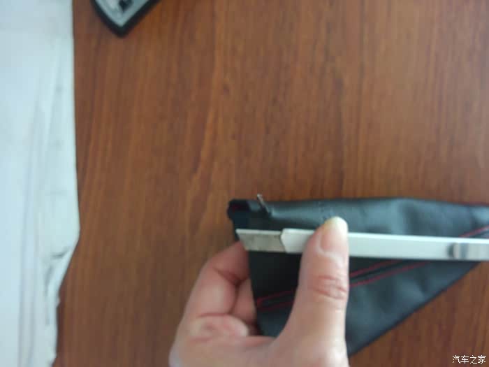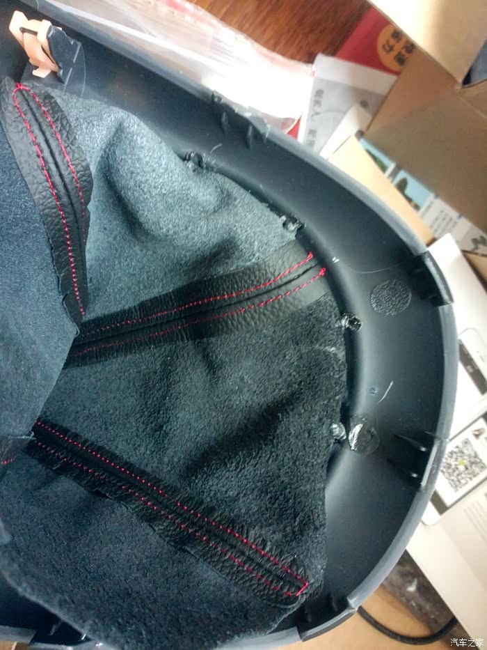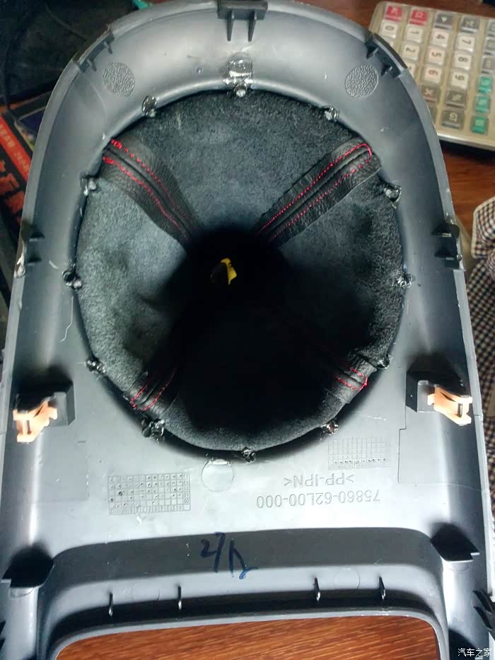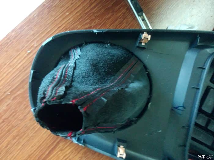 装上皮套低座,皮套顶端参考原车下压到一定程度,档头对正档杆卡位直接按压,档头就牢牢把皮套顶端在档杆固定白色卡位上夹紧了,以后再拆又要一翻动作了。