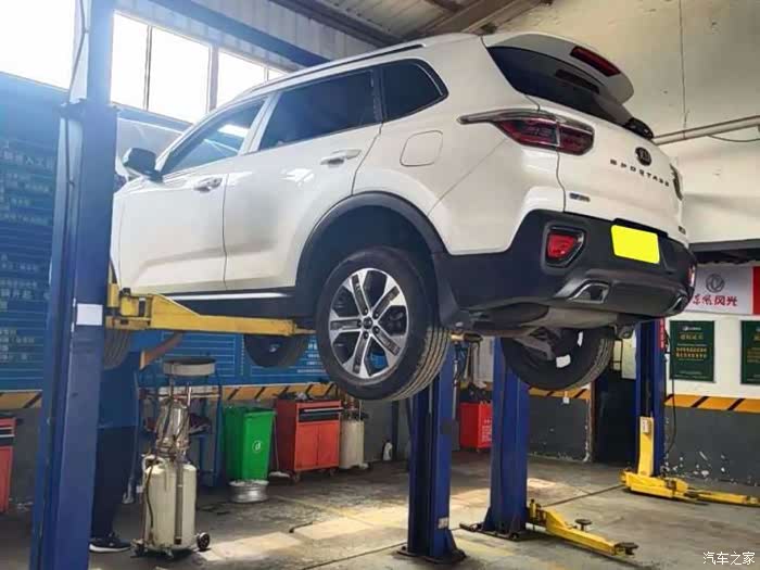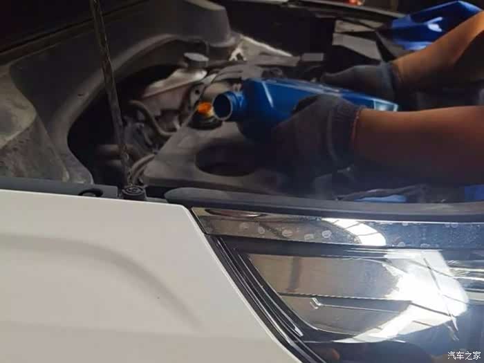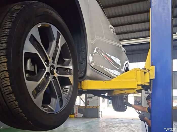 师傅趁着放机油功夫,补充胎压。智跑是有胎压显示功能的,可以试试看到胎压数据,我前轮胎压2.4后轮2.2,后轮有点低,就让师傅补充了些。