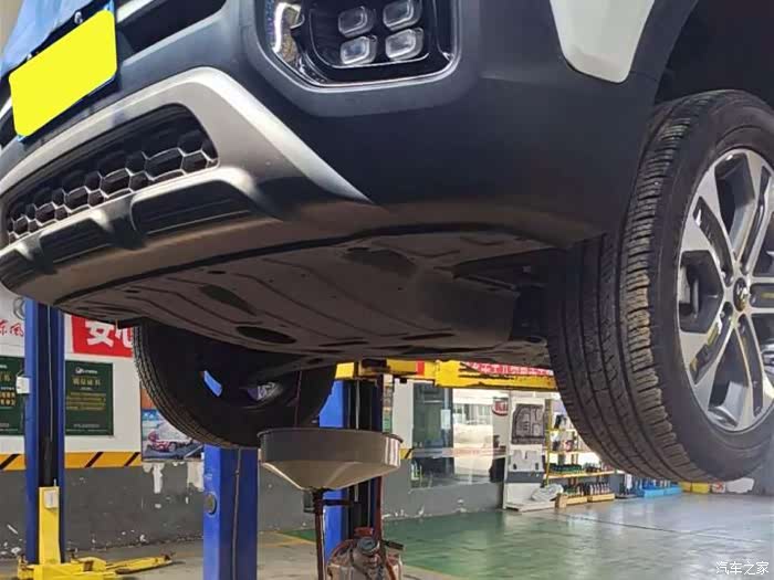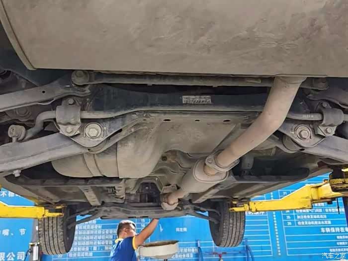师傅在前面放机油,我在后面看底盘,排气管有些锈痕,不过影响不大,毕竟排气管一直是高温工作,这个价位不管什么车的排气管都会出现锈痕,但是智跑没有四驱版,不过没有也好,毕竟轻了很多,而且大部分时间也都是在城市开,走烂路的时候,智跑也能轻松应对。