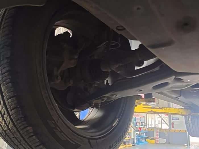 看看前轮情况,轮胎没有破损和刮伤,底盘零部件也没有生锈和漏液情况,质量还是很不错的。