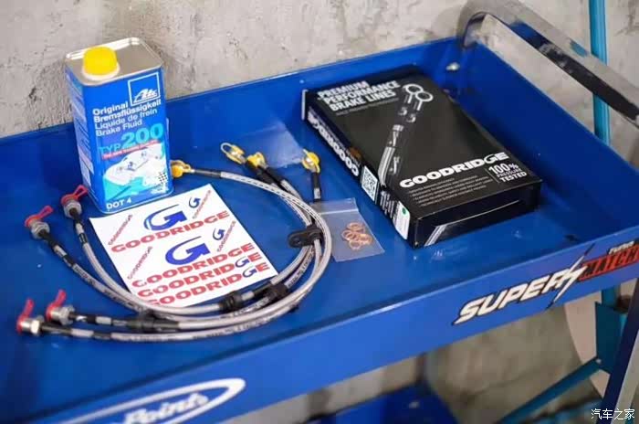离我车不远的工位正在换制动液和刹车钢喉,这一看就是那种大脚油门和急刹车的车主,不然能换这种制动液和换刹车钢喉吗?