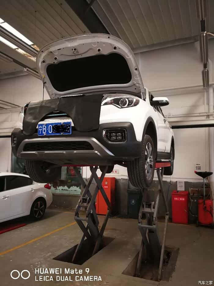 车到店,来做保养的人不多,直接升起来上架。做保养之前4S店发布了活动通知,花2200元在4年以内可以给车做6次保养,自己算了一下每次合下来366,和在外面修理厂用好点的机油乱七八糟下来也多不了多少,加上在店里持续做保养,车有什么问题他们也找不到什么借口,后期厂家有什么升级啥的也都免费,总的来说也不吃亏。这是保养优惠活动合同,项目大家自己看,细看下来没什么,都是一些检查之类的。旁边他们给加的字我当时也没注意,好像还给送了一面喷漆?