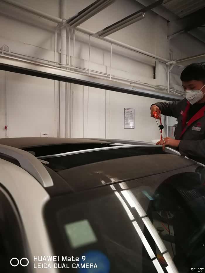 这是应我的要求对天窗进行了清理,防止一冬天没开有沙石在里面,打开时磨损天窗。