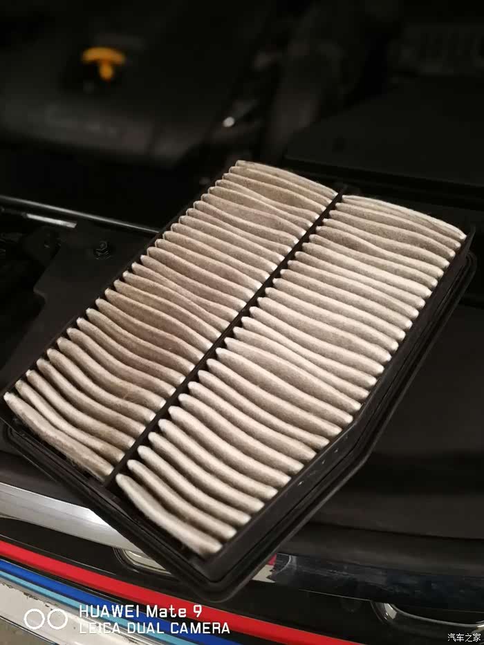 换完机油开始清理空滤,空滤还算干净,吹一吹就可以了。