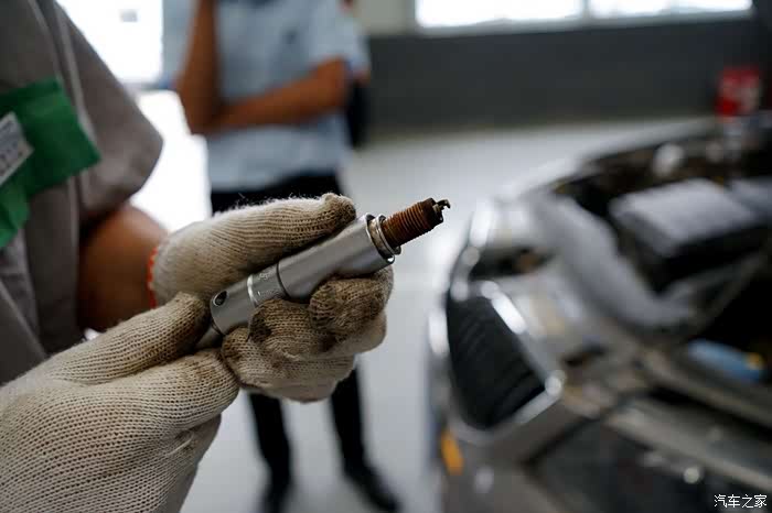检测火花塞,爱车已经跑了五万多公里,官方要求是三万公里更换,检测人员告知我的确实也应该换了。