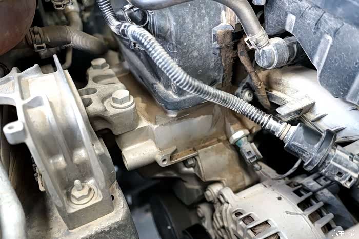 检测人员发现我发动机处有漏油现象,于是拆开了保护发动机齿轮的盖,发现并不是漏机油,而是保养车时添加机油造成的,擦干净即可。