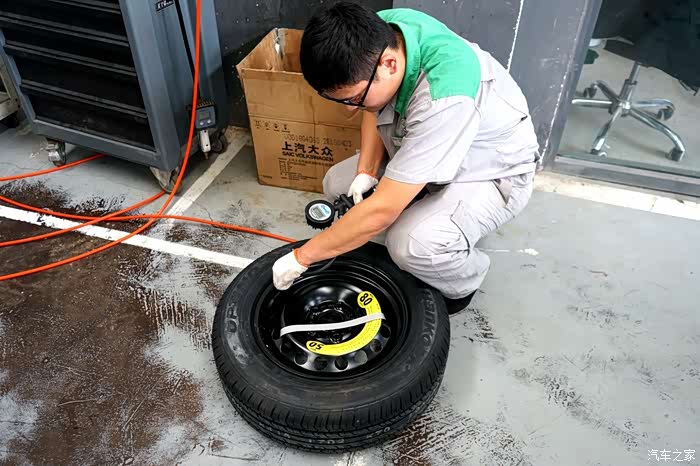 四年没落地的备胎,胎压已经变成1.2,正常是3.5。希望永远用不到备胎。