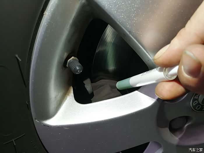 服务人员给小明调整一下胎压。
