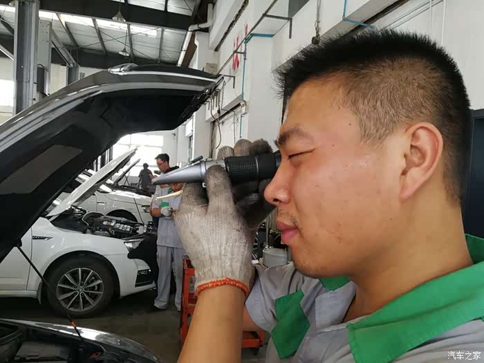 售后服务人员将小明开上工位,准备检测。