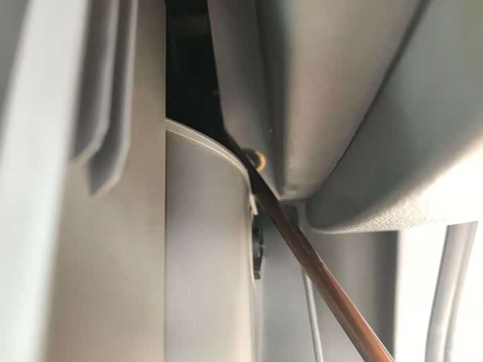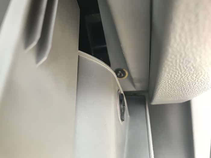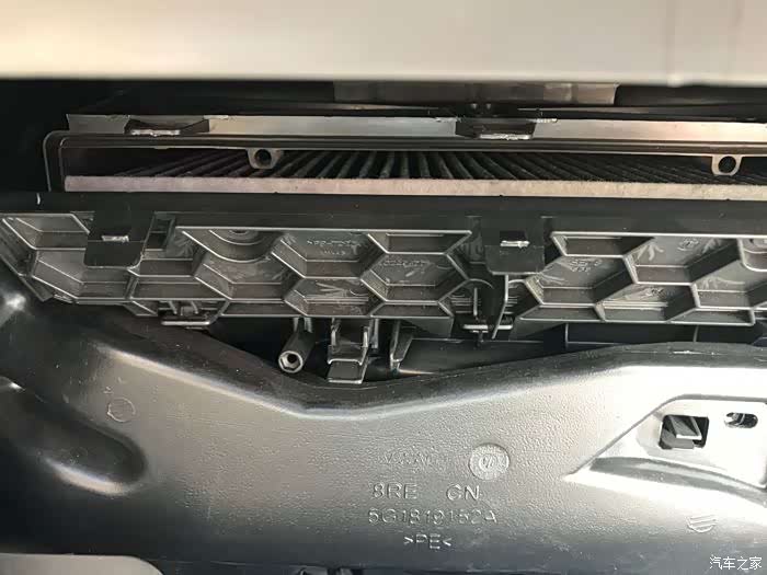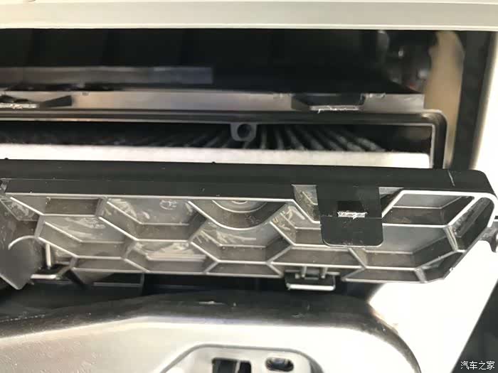 打开副驾驶储物箱,空调滤芯就隐藏在此。用双手托住储物箱底部轻轻往上一提,就可以将储物箱拆卸。