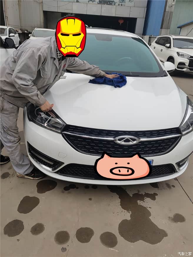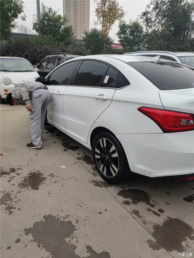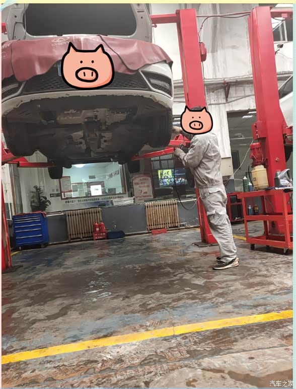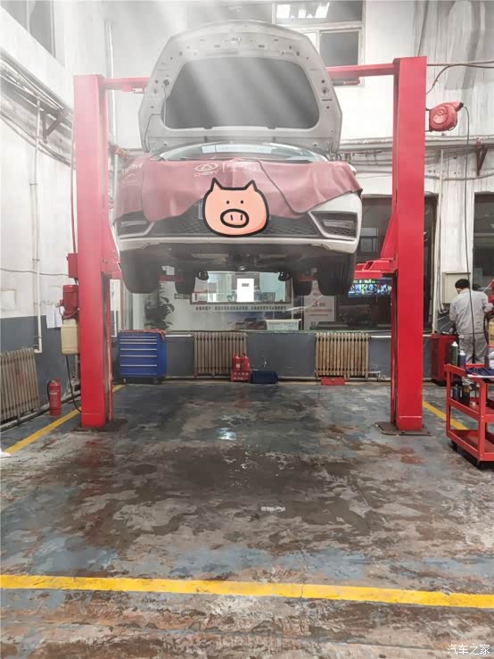 因为之前和售后已经联系好了,所以一切还是很顺利,第一次保养是免费的,时间仅需要40分钟,所以这个时间我还是可以接受的,拿出了行驶证和保养手册,售后人员为我的小艾加上了防护工具,就开始首次保养了(此处需要一点小掌声呀,哈哈、、、)