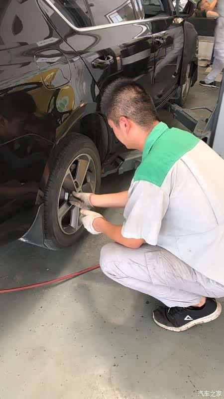 检查轮胎胎压和轮毂螺丝紧固程度,对胎压进行了调整。